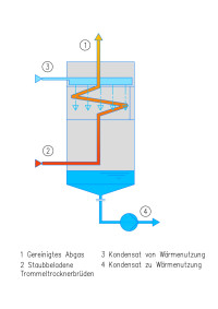 Der SWISS COMBI Kondensator dient der Energierückgewinnung aus Trommeltrocknerbrüden. Er kann sowohl bei direkt als auch bei indirekt beheizten Trommeltrocknern (SWISS COMBI ecoDry) eingesetzt werden.